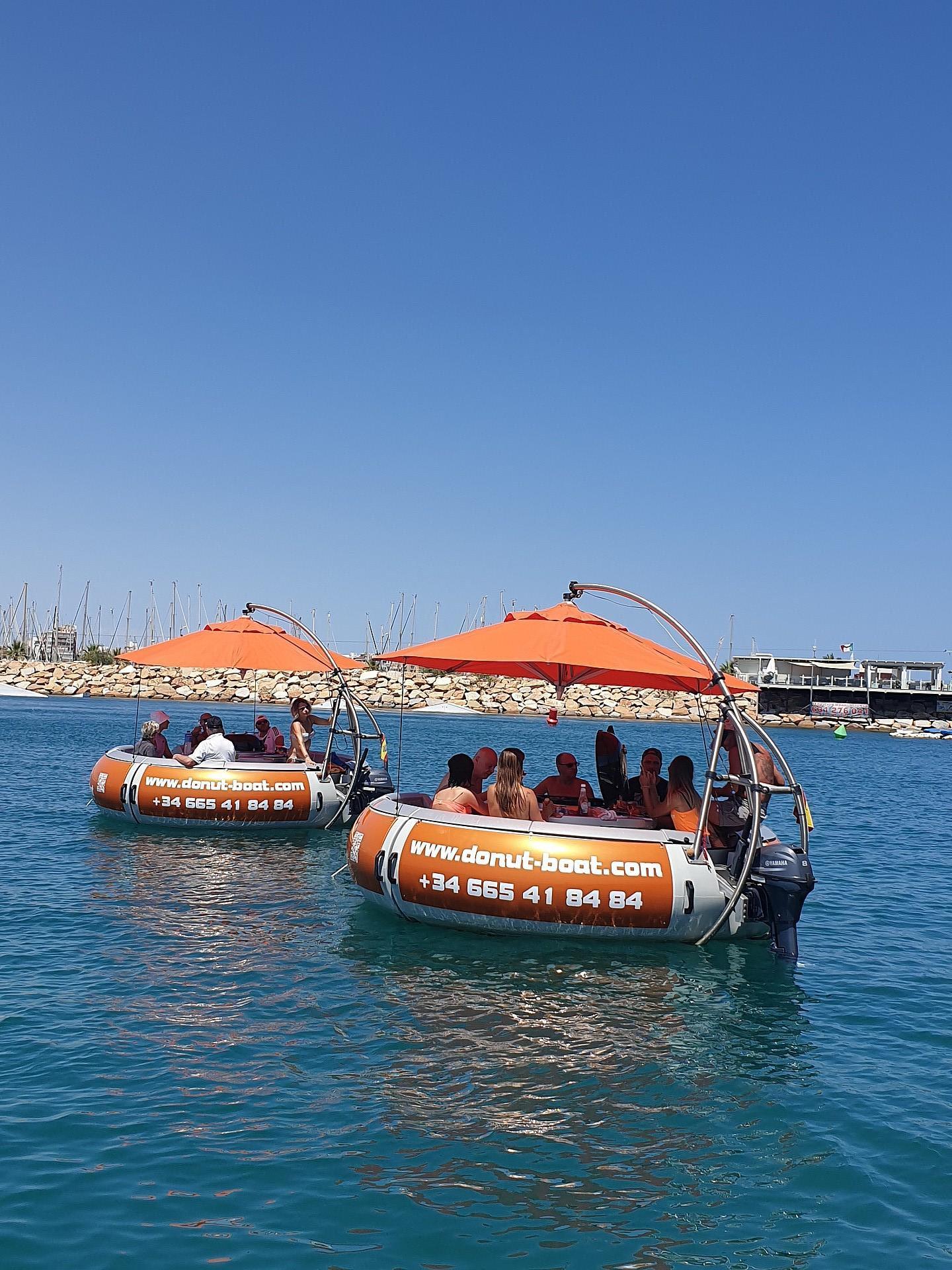 Esta actividad única está hecha para usted, venga y disfrute de nuestros Donut Boats con sus amigos, familiares o compañeros. Comparta un aperitivo y / o una barbacoa XL en el mar en nuestros Donut Boats durante unas horas, de día o de noche.